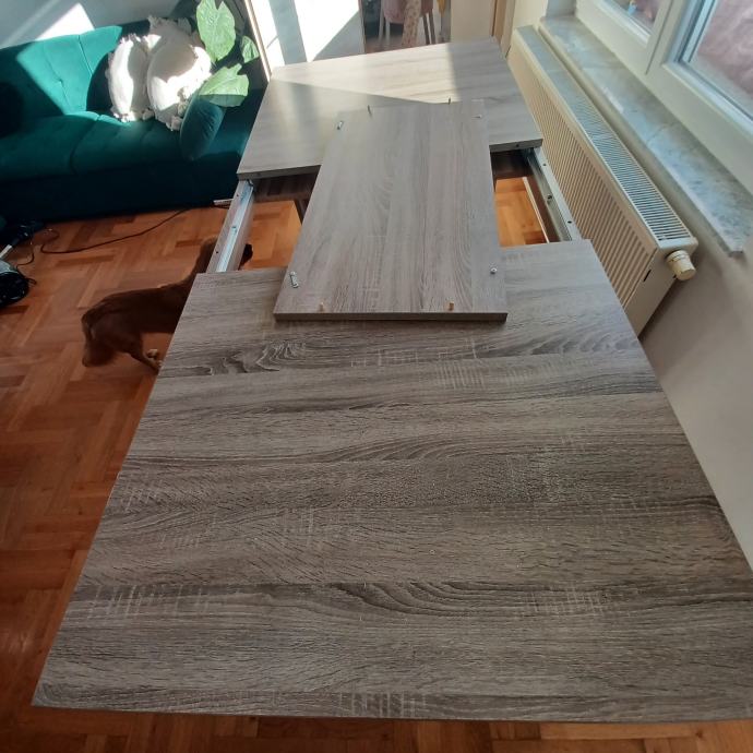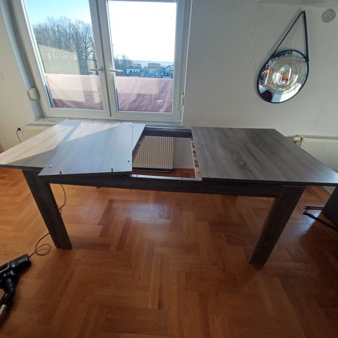 Stol na razvlačenje 6 ili 8 osoba, izuzetno stabilan, dimenzija zatvorenog stola 160 cm, dodatak za razvlačenje 47 cm. Može i u kompletu sa komodom...zainteresirane molim da me kontaktiraju za slike komode.