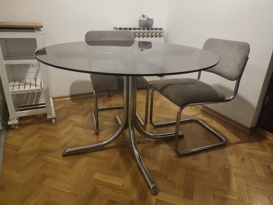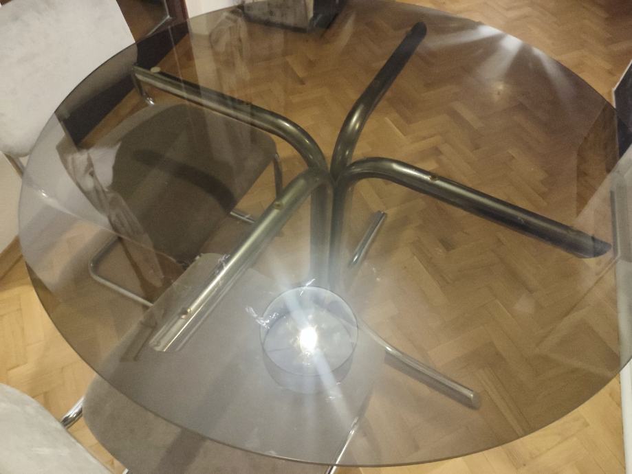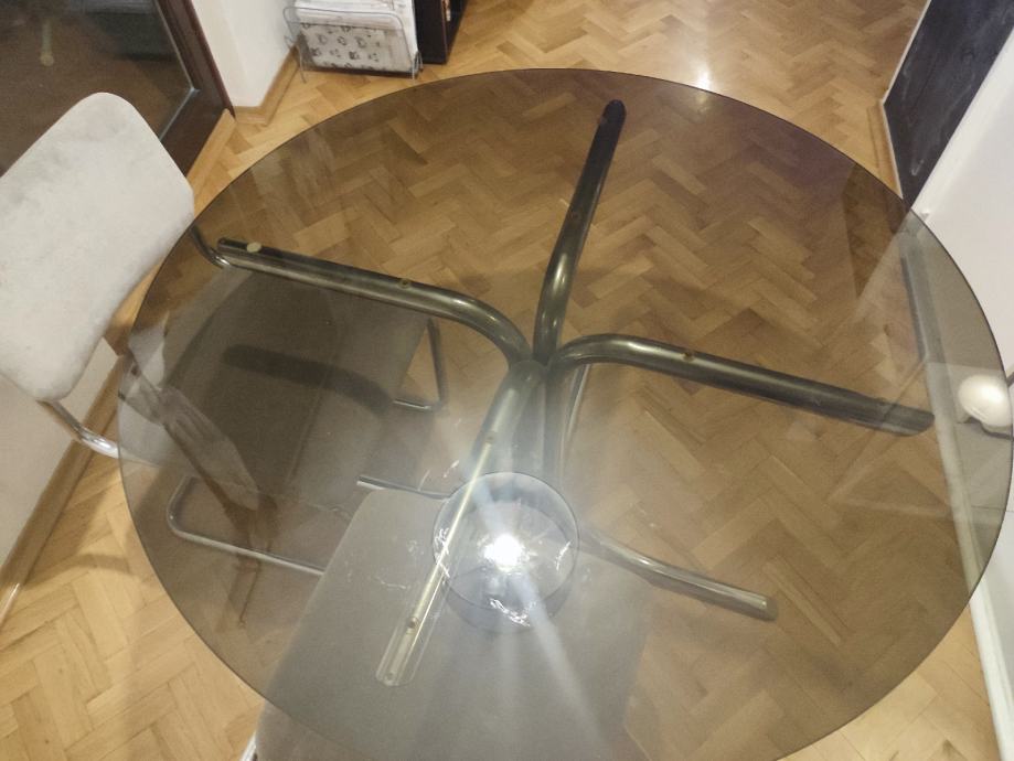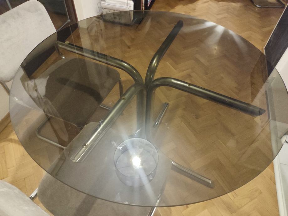 Stakleni stol promjera 112 cm,visine 72 cm sa kromiranim nogama