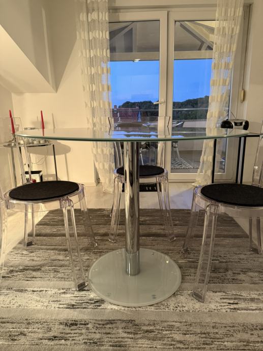 Prodajem stakleni okrugli stol promjera 100cm i visine 77cm - cijena stola je 120€.