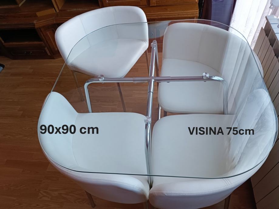 Prodajem stakleni stol i 4 stolice. Idealno za stan. Dobro očuvano, bez oštećenja.
