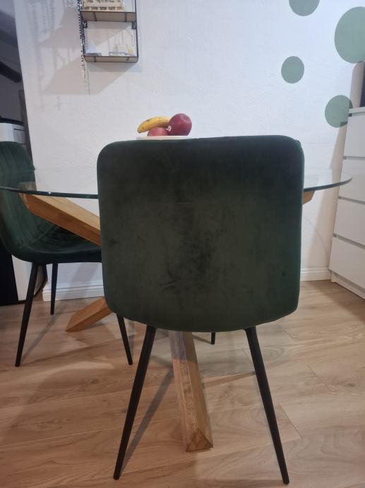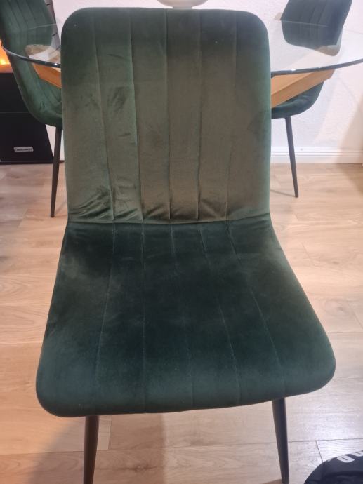 Četiri stolice s metalnim nogama (jedna stolica je u sobi) također stare godinu dana. Sve zajedno je 230 eura, a moguće je kupiti samo stolice za 100 eura, ili stol za 130 eura.