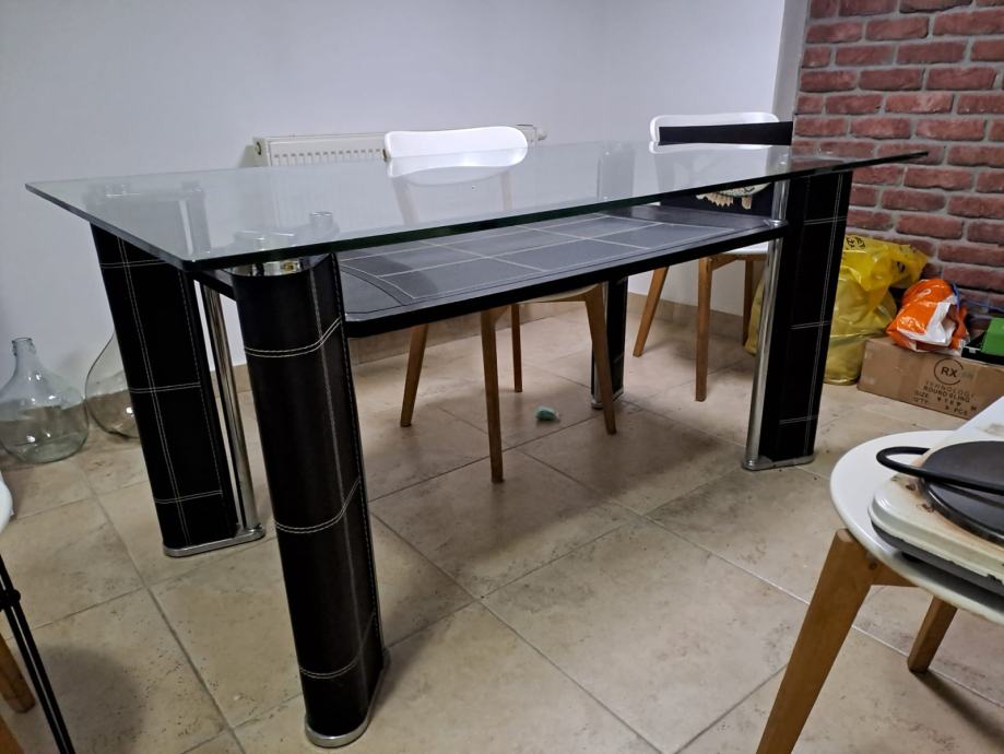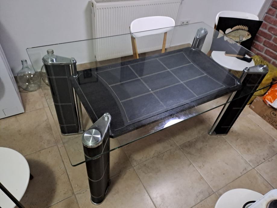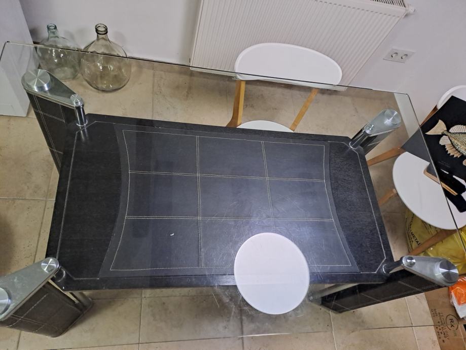 prodaje se masivni stakleni stol za 6 osoba, 90x150 cm u super stanju. ploča staklena.