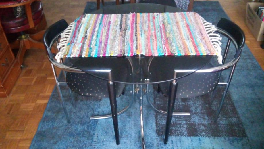 Stol sa staklenom pločom (boja dima) promjera 90 cm. U odličnom stanju. Prvi kontakt molimo u inbox.