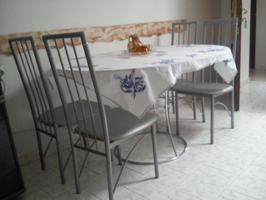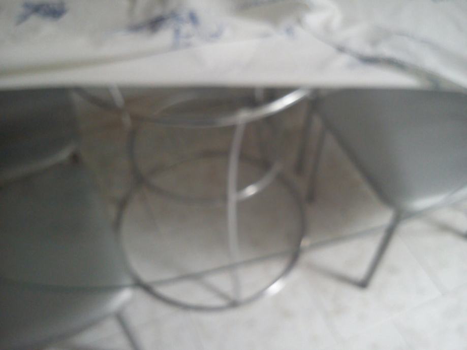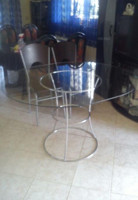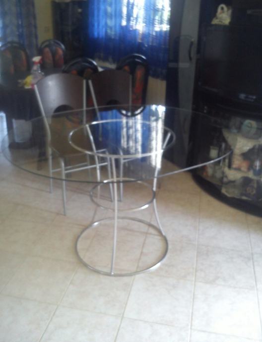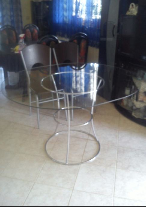 ovakni stakleni stol,moderan dizajn, na orginalnom inox stalku,kupljen u Italiji prije 6god. Dužina 130x110x84 visina za 30e..Zbog uređenja stana Imamo i drugog namještaja u prodaji,Pogledajte "svi oglasi ovog oglašivača".