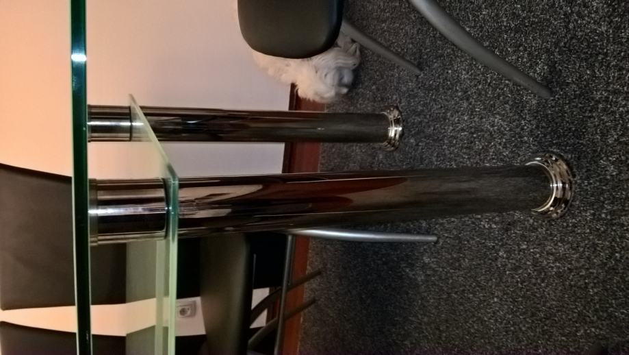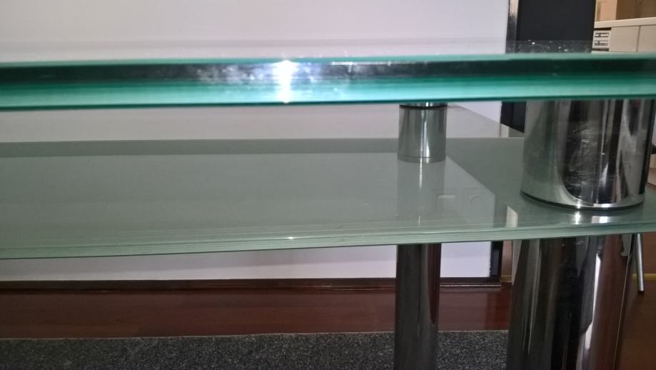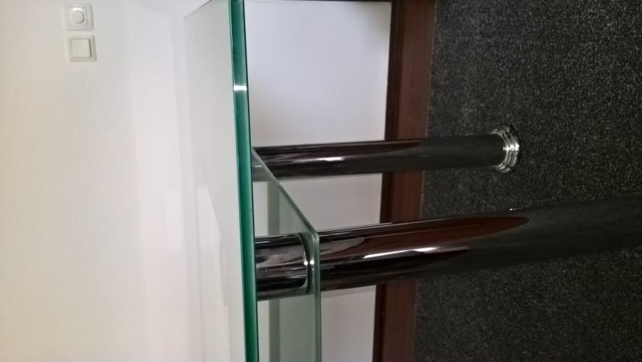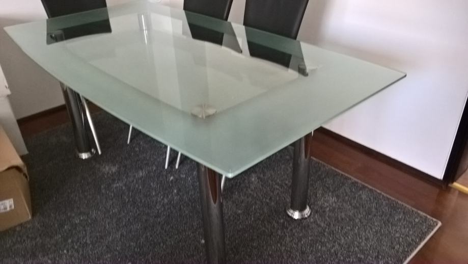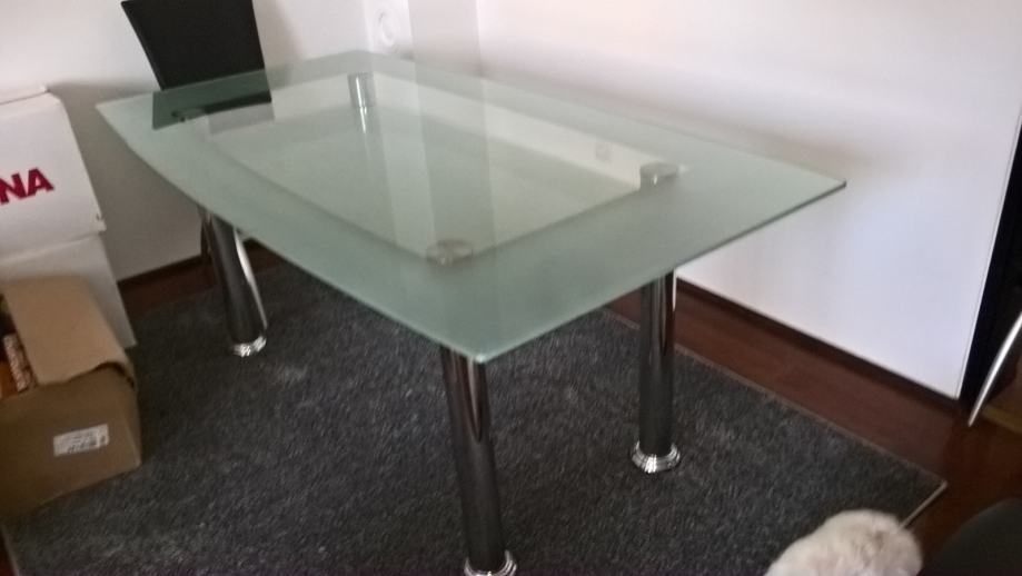 Prodajem stakleni stol za 6 osoba, malo korišten, neoštećeni, debljina stakla 1 cm - donja i gornja ploha. Kromirane noge. Početka cijena 900 kn, može i dogovor.