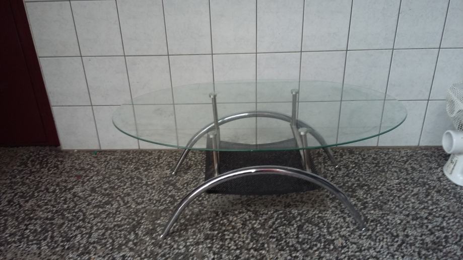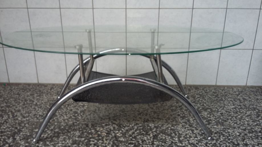 Sobni stakleni stolić jajčastog oblika sa drżač em za novine vidi slike I ostale moje oglase!
