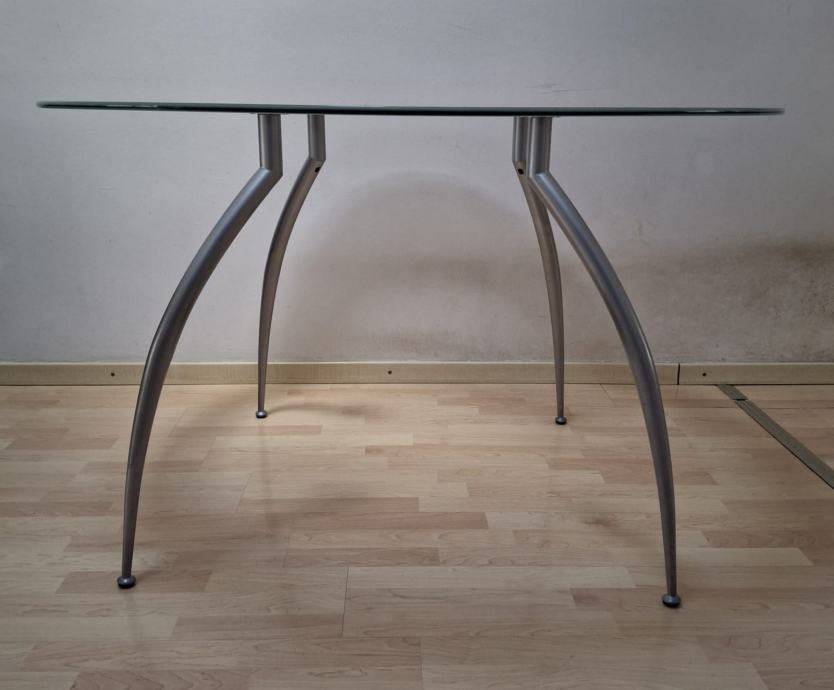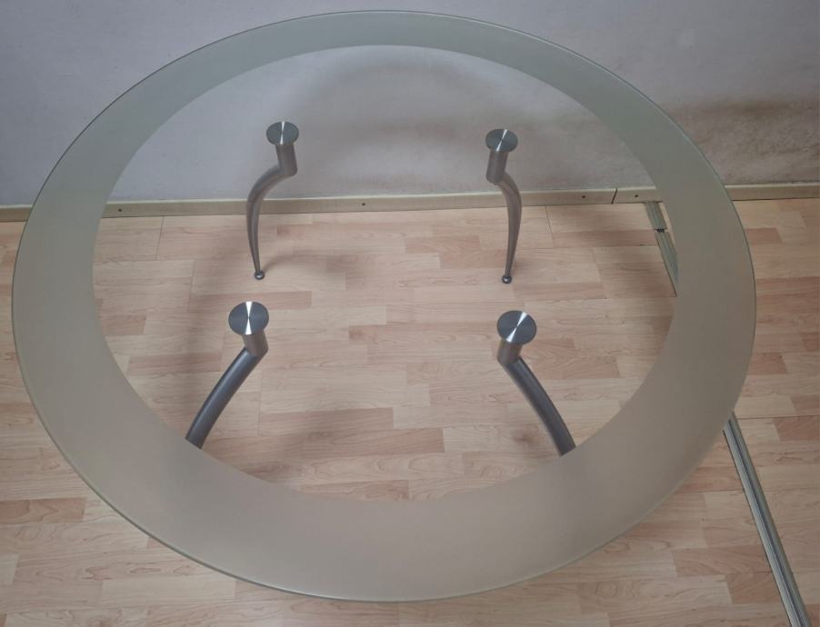 Prodajem okrugli stakleni stol s metalnim nogama, promjera 120 cm i visine 75 cm.