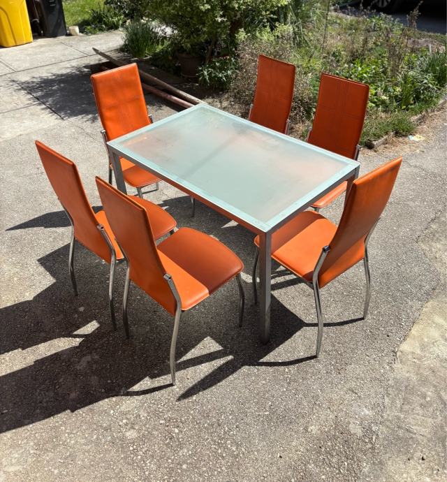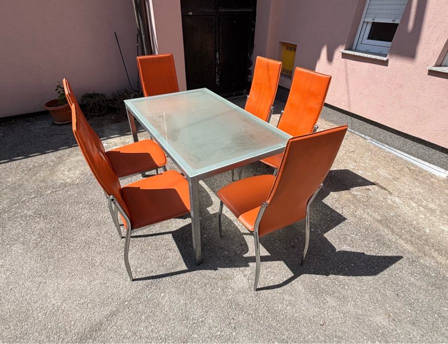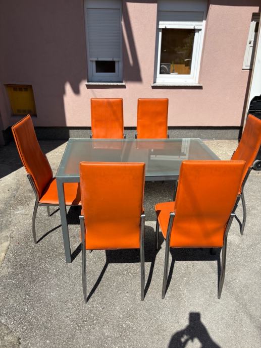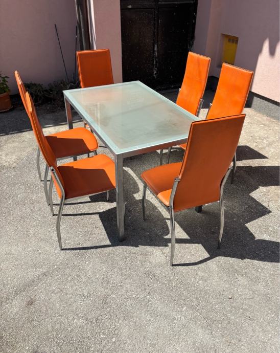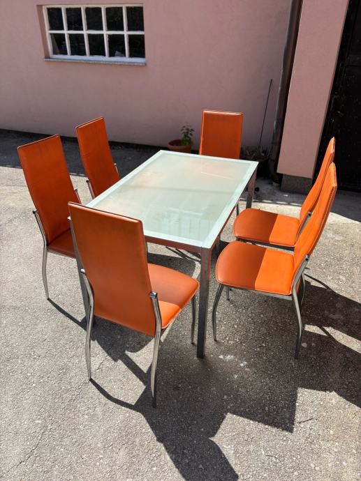 Prodajem uscuvani stakleni stol sa stolicama.