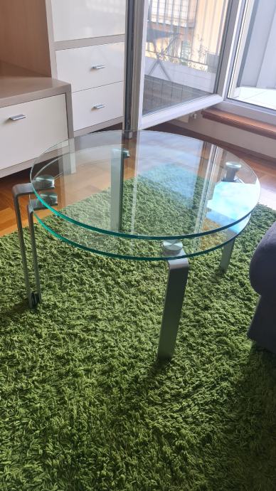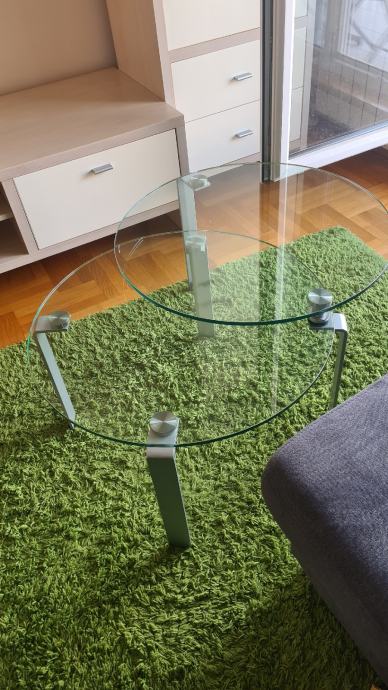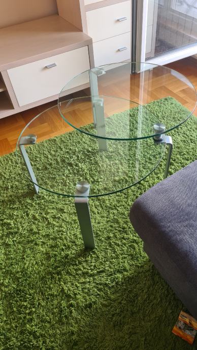 Prodajem stakleni stolić za dnevni boravak promjera 65 cm, lako se proširi kad imate veće društvo. U odličnom stanju. Lokacija Sveta Nedelja,Franje Tuđmana .