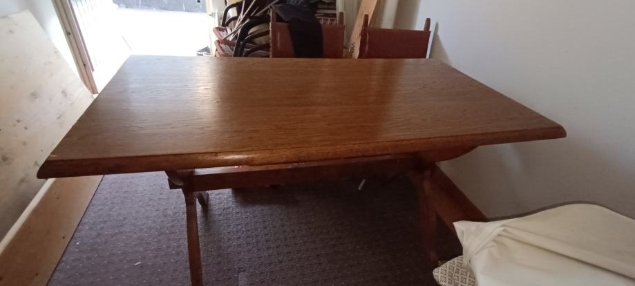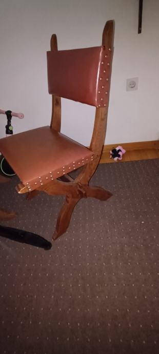 Starinske očunavne drvene stolice i malo oštečen drveni stol ( na jesnom rubu)