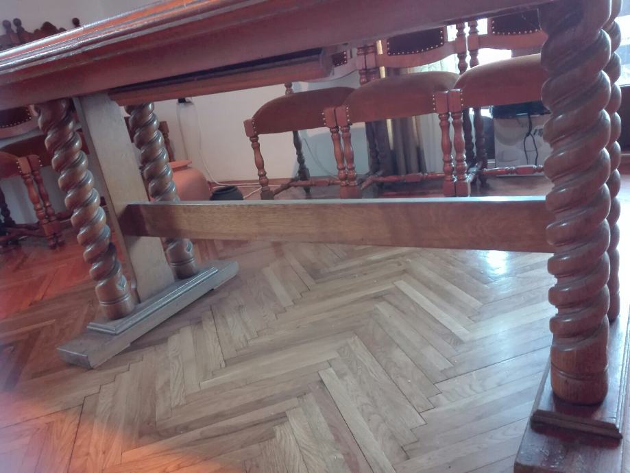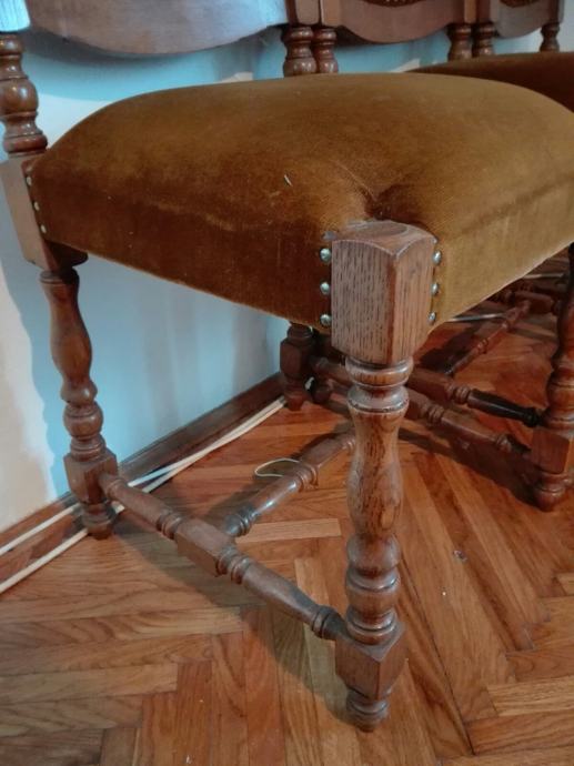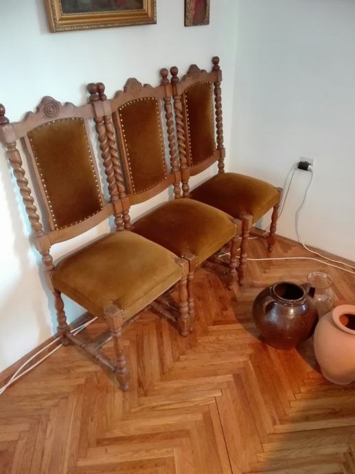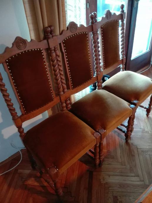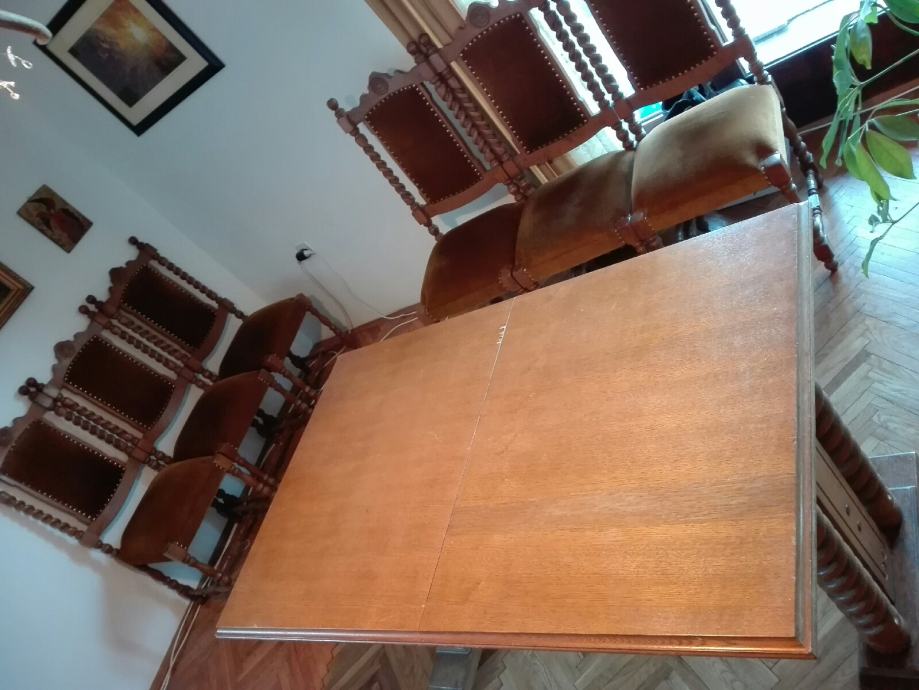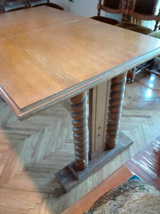 Starinski stol i stolci. Stol se može rastegnuti da bude dulji. Dimenzije stola 137x87, visina 75. Stolci se malo klimaju ali sve ukupno je dobro očuvano. Na SMS nemogu odgovoriti, najbolje bi bilo da me nazovete 099 687 5657 ili pošaljete poruku preko Njuškala.