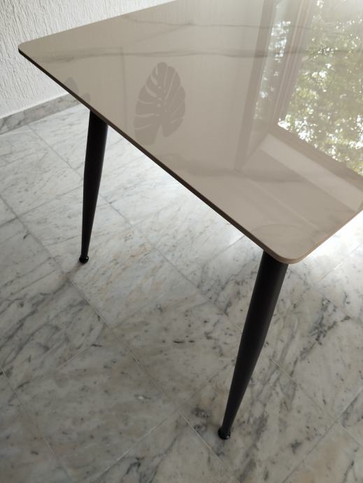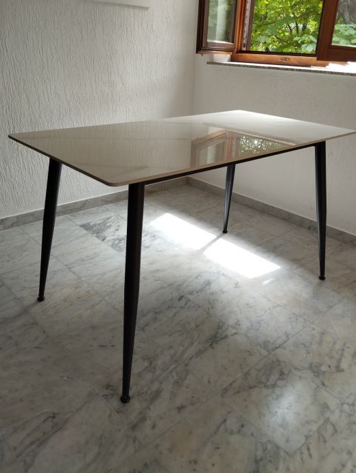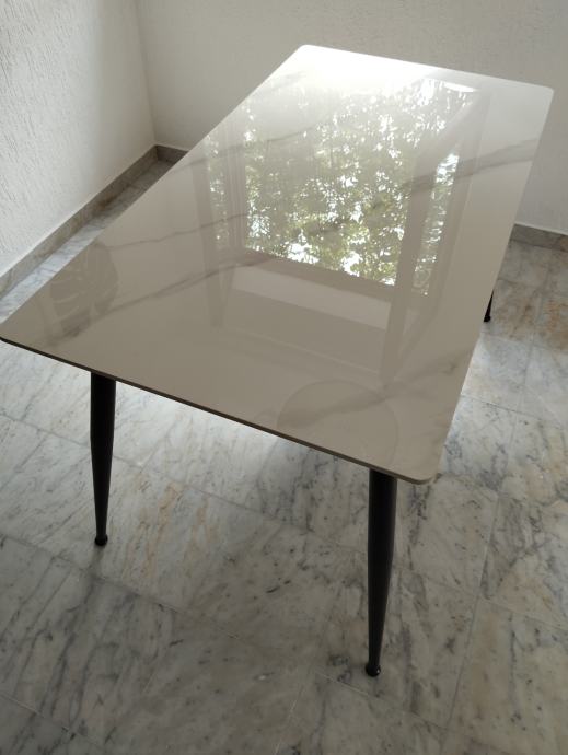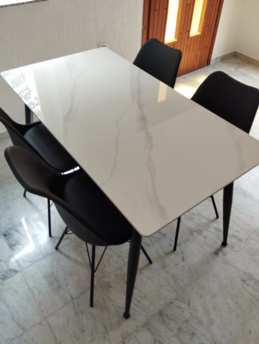 Elegantan novi stol s keramičkom plohom, imitacija mramora. Dimenzija 139 x 79 cm.