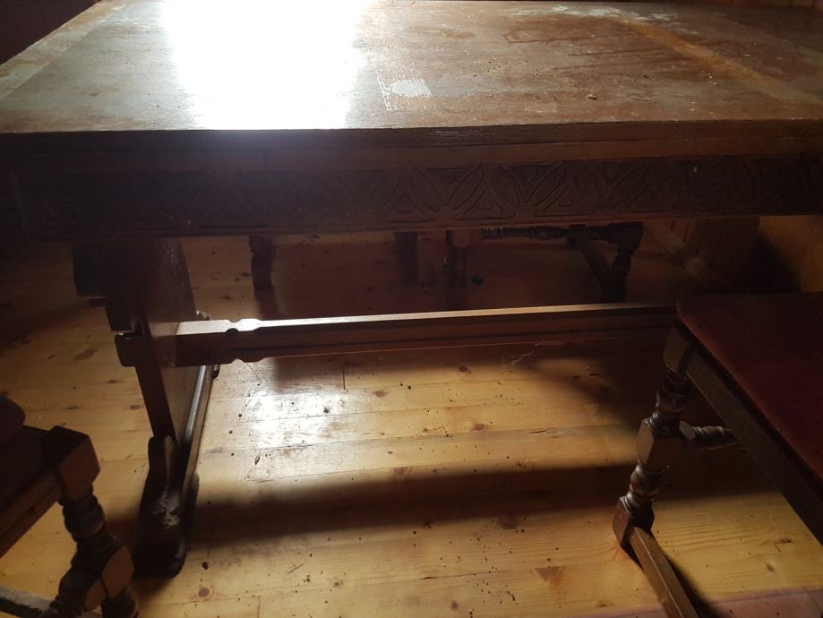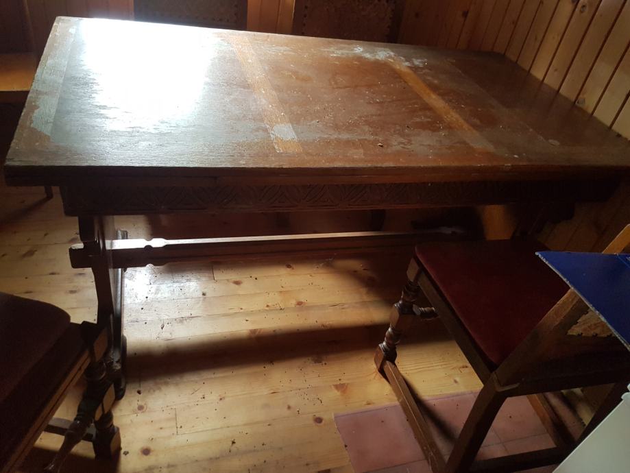 Masivni stol i 4 stolice za urediti...preveliko nam za prostor