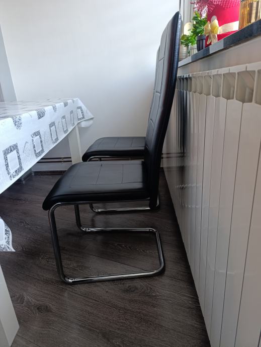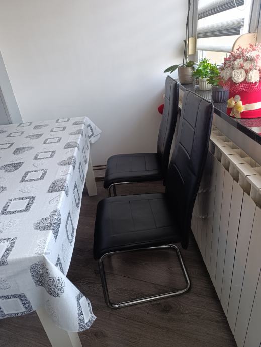 Uz stol dolazi i 6 stolaca (samo jedan ima par crtica na kožnom sjedalu).