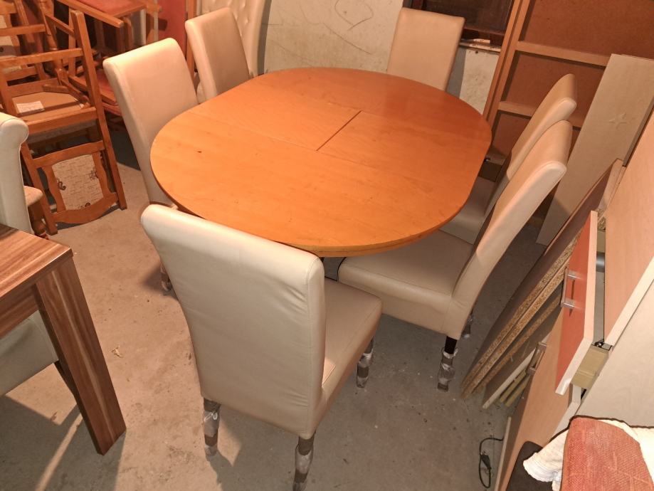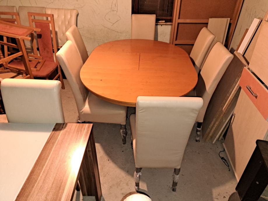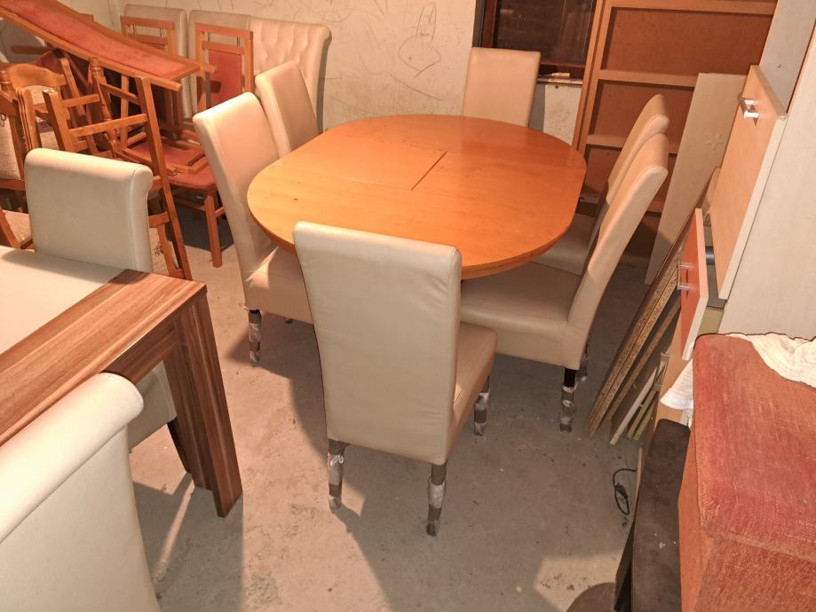 STOL 6 STOLICA,promjer stola 110 cm,moze se razvuci na 150 cm,6 stolica od bez eko koze,CIJENA 370 EURA