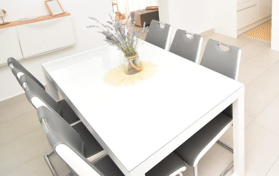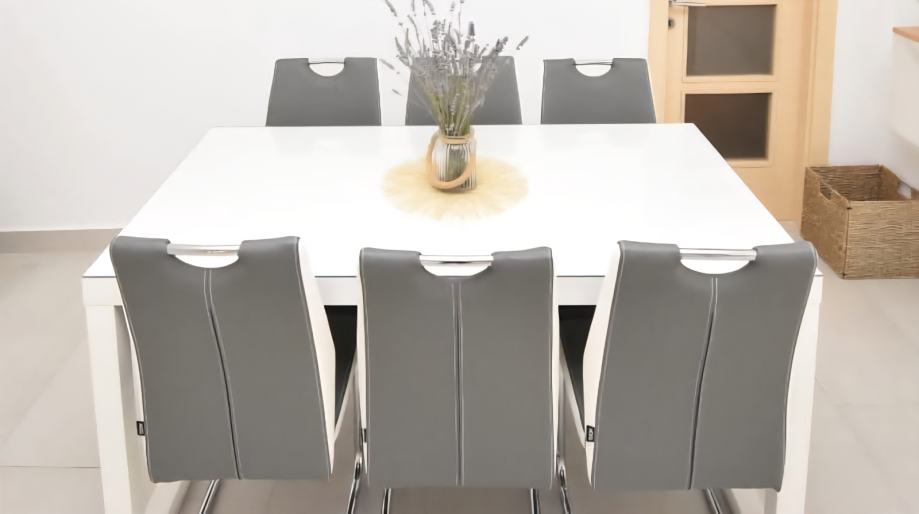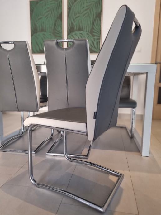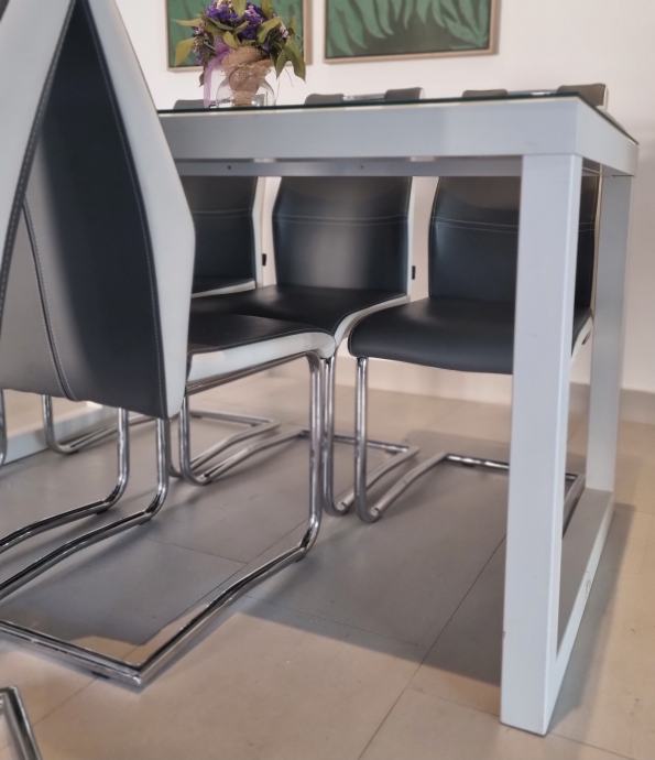 U odličnom stanju, stol dimenzija 80x150 sa kaljenim staklom na površini i 6 stolica