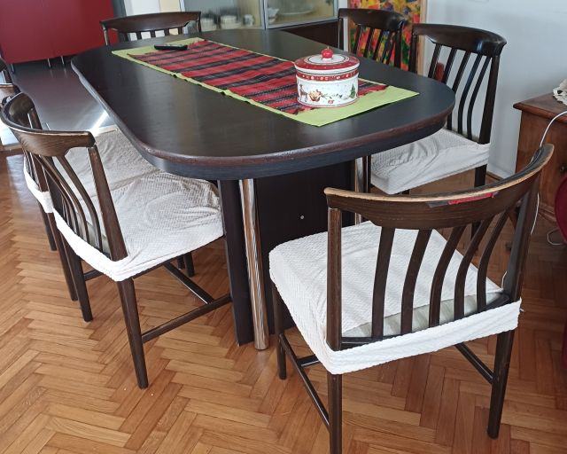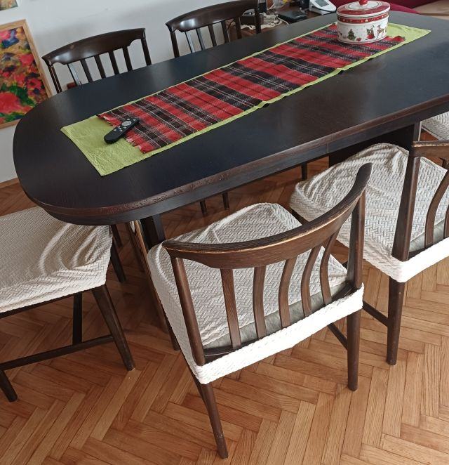 Ovalni stol na razvlačenje 160+4x40 x 92 x 77, boja venge (tamno smeđa)
