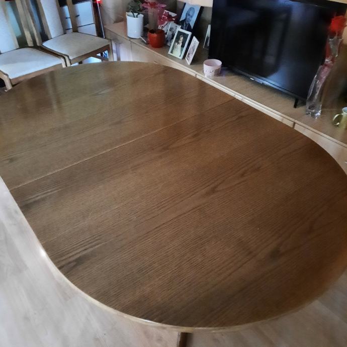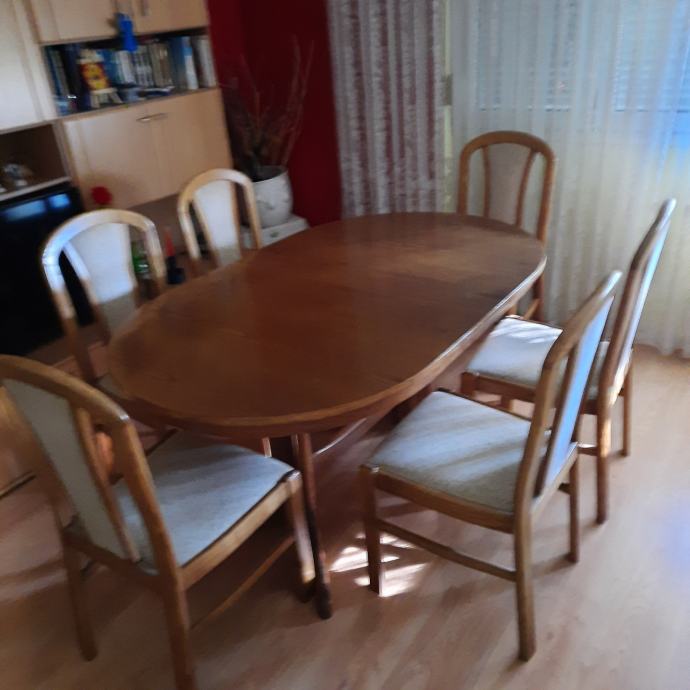 Prodajem ovalni stol na razvlacenje+6.stolica puno drvo.