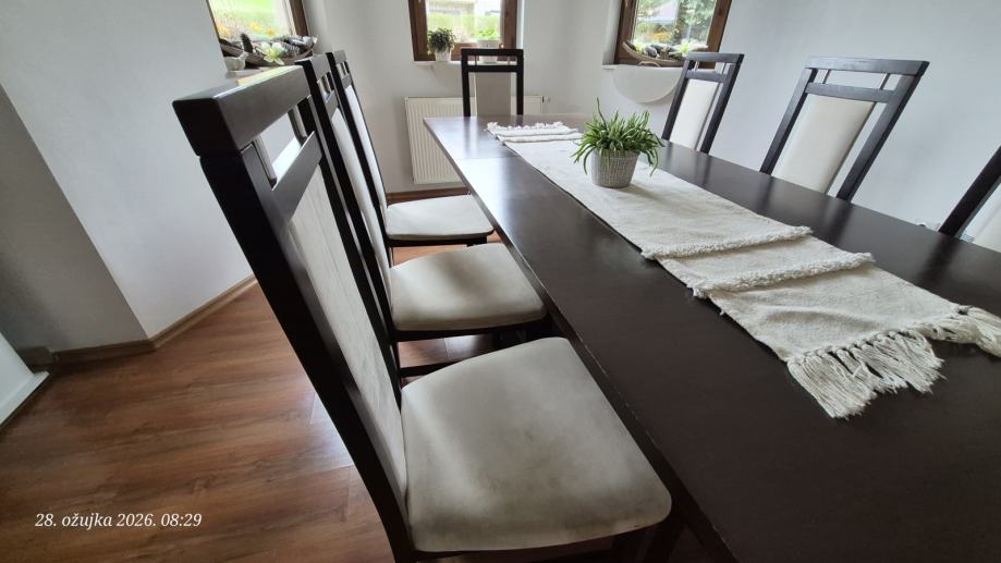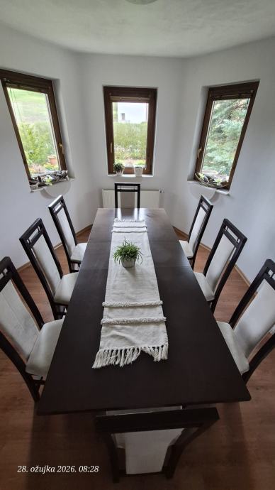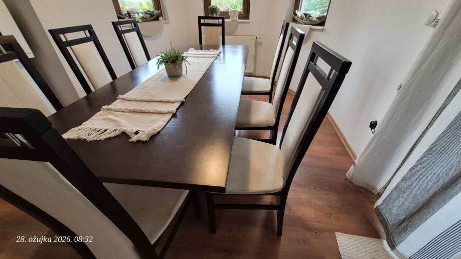 Prodajem stol 220x90 sa produžetkom i 8 stolica.
