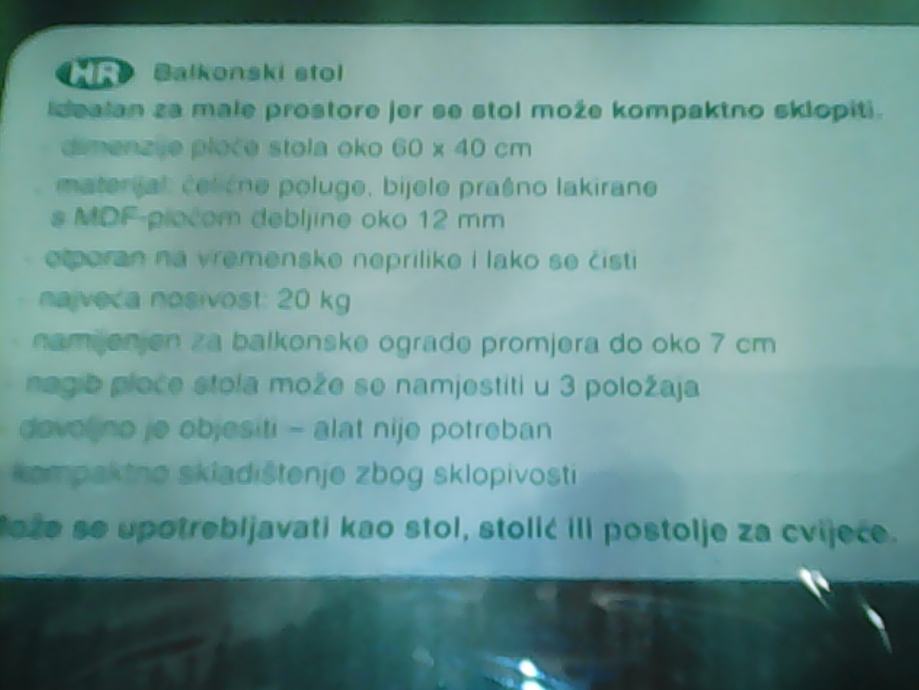STOL ZA BALKON BALKONSKI STOL STOLIĆ POSTOLJE ZA CVIJEĆE NOVO HITNO