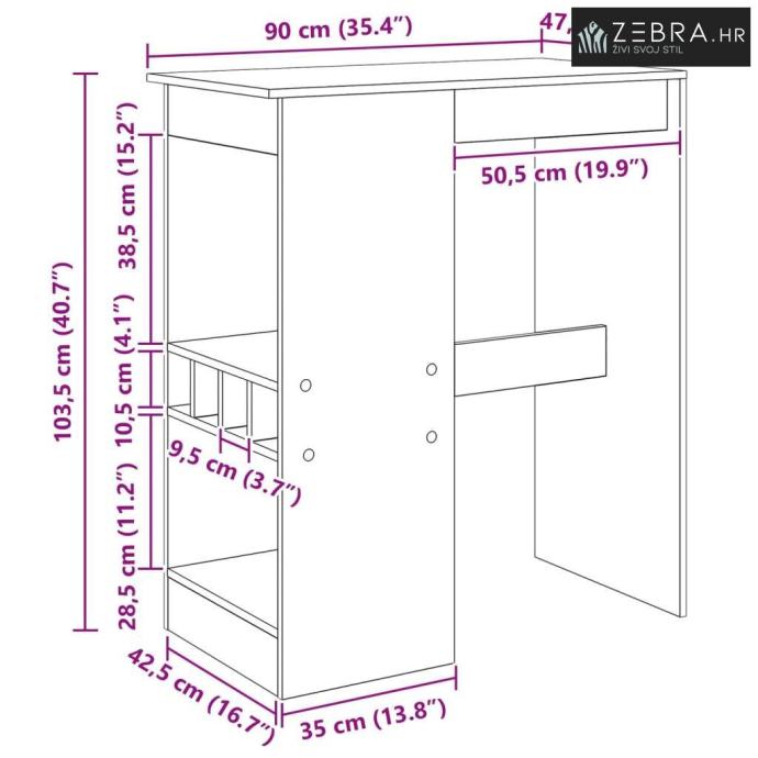 Sveukupne dimenzije: 90 x 47,5 x 103,5 cm (D x Š x V)