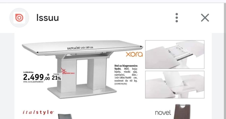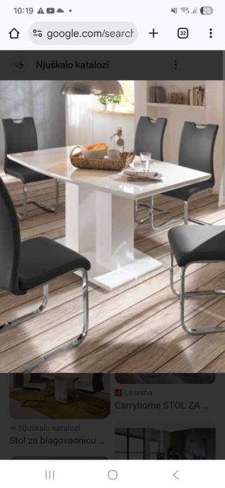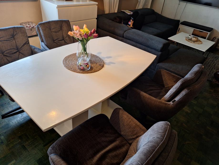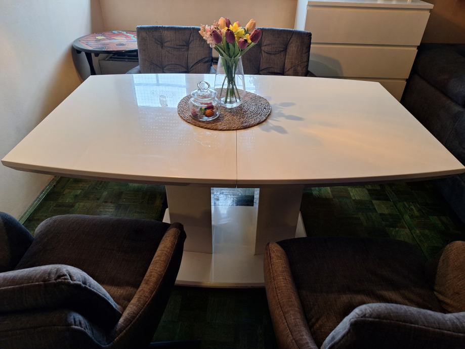 Prodajem lijepi bijeli blagavaonski stol na razvlacenje visokog sjaja, kupljen u Lesnini,140/180x90 (vis.178).