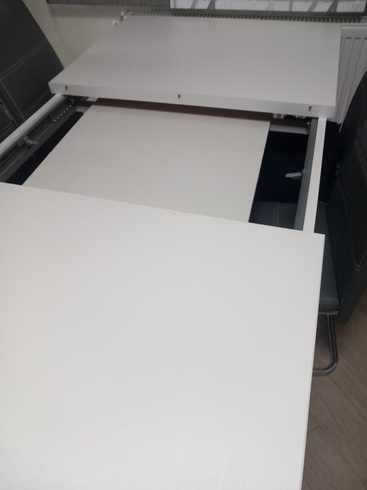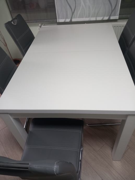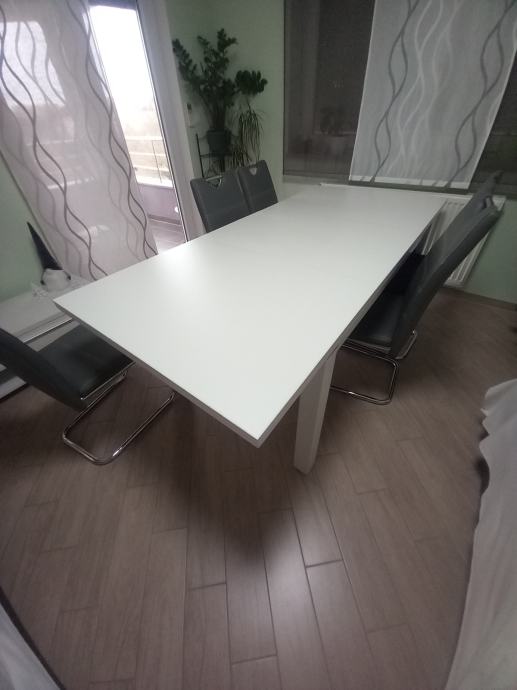 Stol na razvlačenje, drveni, bijele boje. Dimenzije D160(200) x Š90 x V 76 cm. Stol se razvlači pomoću mehanizma na 200cm dužine.