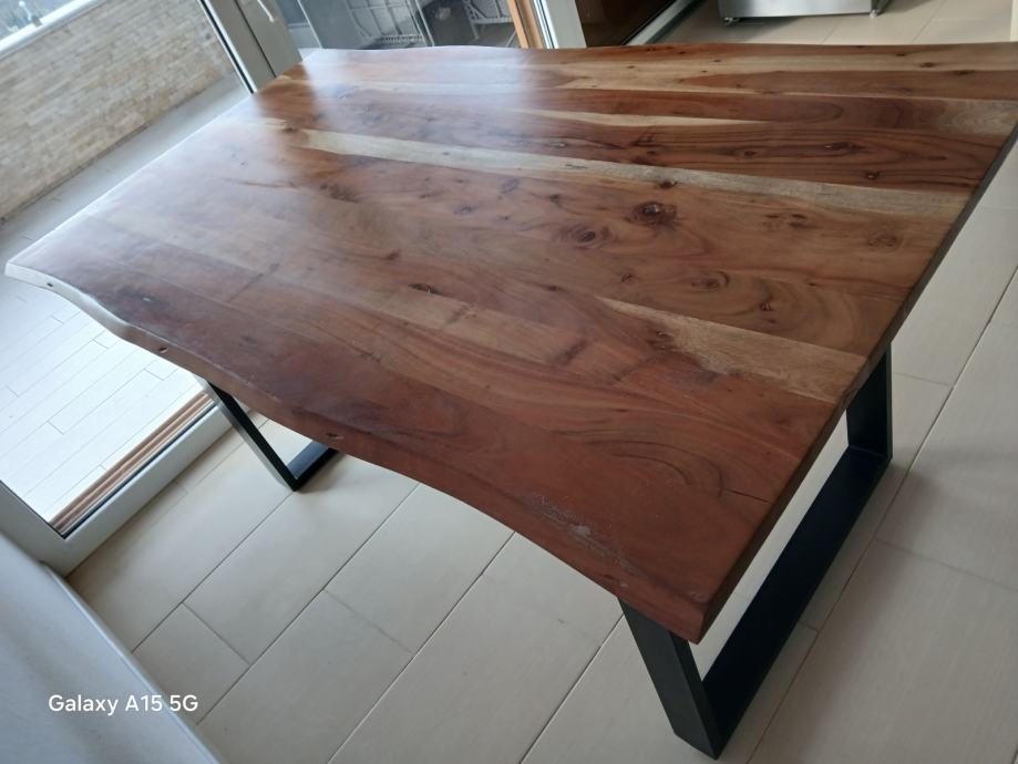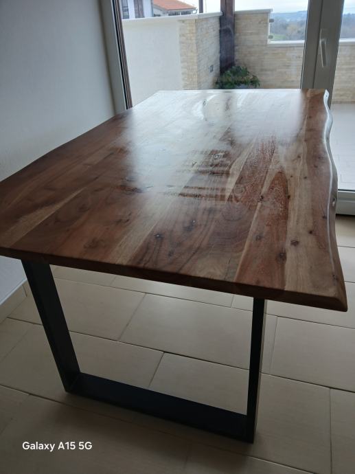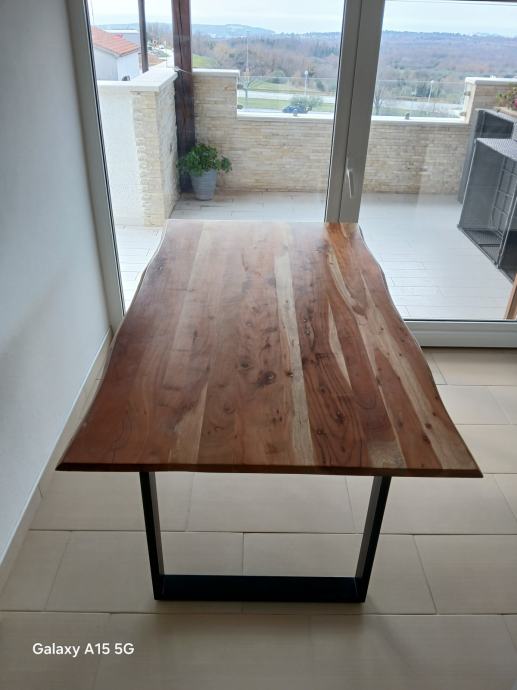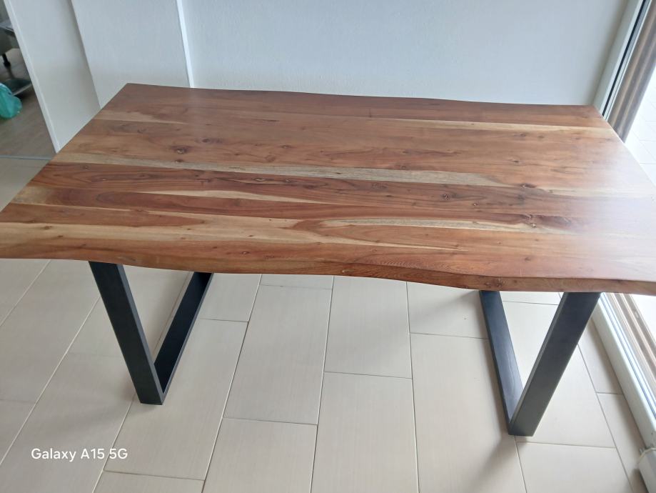 Prodaje se lijep, očuvan, modernog dizajna, stol od punog drva sa metalnim nogama.