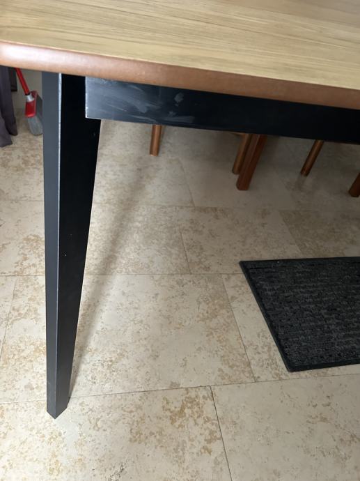 Materijal: Gornja ploča izrađena je od hrastovog furnira, dok su noge od masivnog drva obojenog u crnu boju.