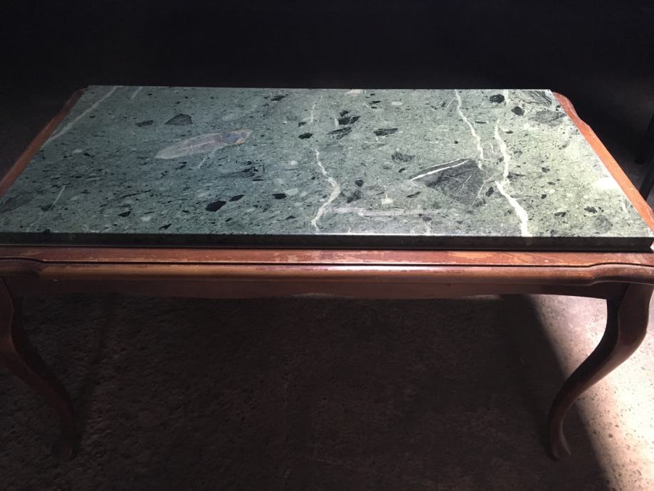 Prodajem stol puno drvo sa mramornom plocom. Duzina 115 cm sirina 60 cm visina 60 cm.