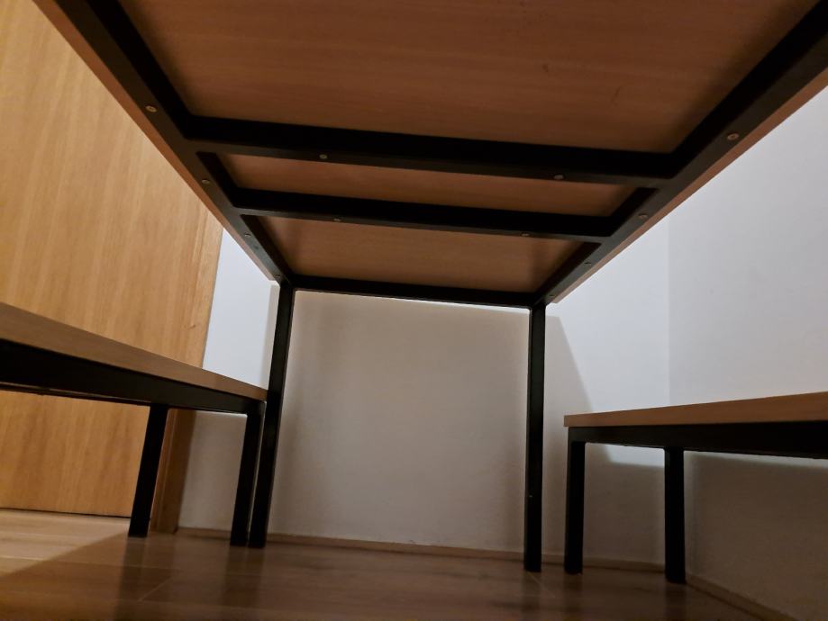 Izdrađeno od metala i iverice (kantirani rubovi ,boje buke ,25mm debljine)