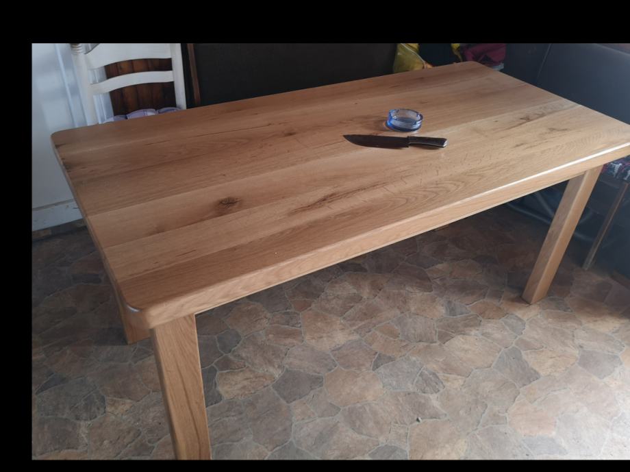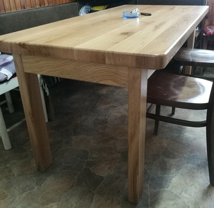Masivan stol kompletno cijeli izrađen od pune hrastovine dimenzija ploče 166cm x 80cm i debljina 5.5cm. Dakle nema furnirane iverice, uklada, imitacije i sl. Stol je korišten kratko vrijeme. Stol je rastavljen i lako se sastavlja. Moguć dogovor oko dostave