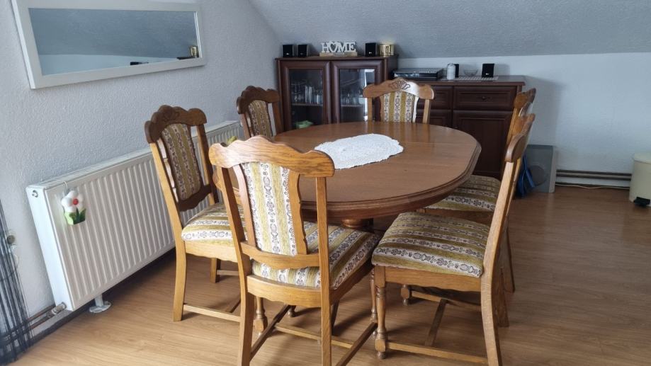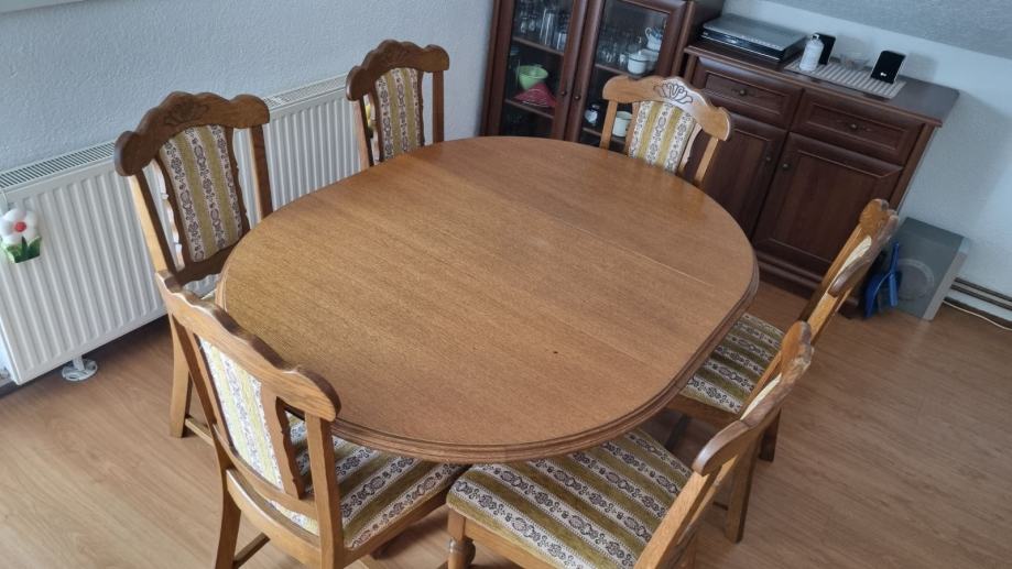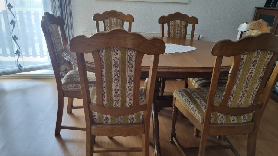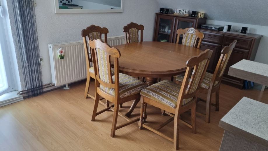 KVALITETAN STOL HRASTA (ovalni na razvlačenje) + ŠEST HRASTOVIH STOLICA: