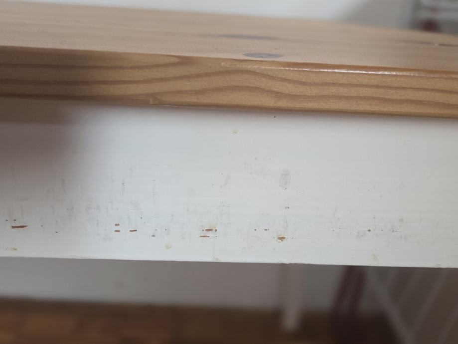 Stol ima manja oštećenja koja se mogu vidjeti na fotografijama (ne na plohi nego na bijelim dijelovima stola).