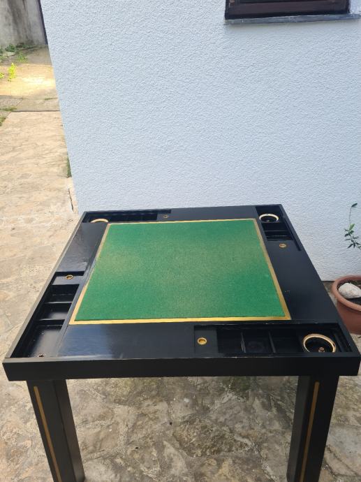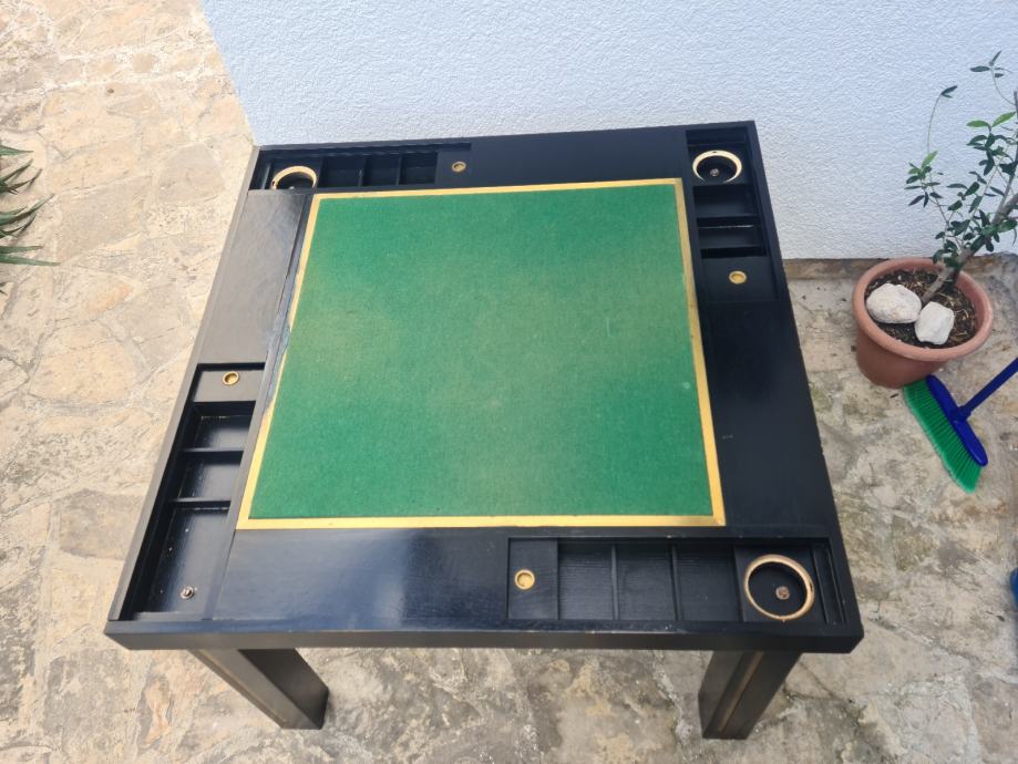 Stol za kartanje u pristojnom stanju. Rijedak primjerak. Djelomična oštećenja laka. Puno drvo.