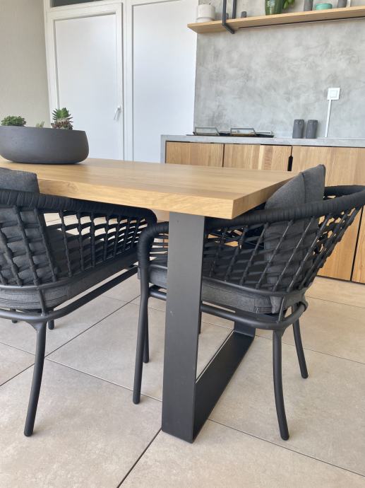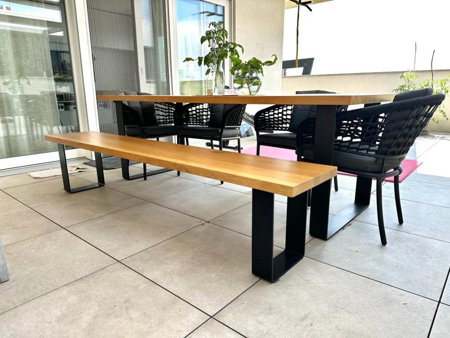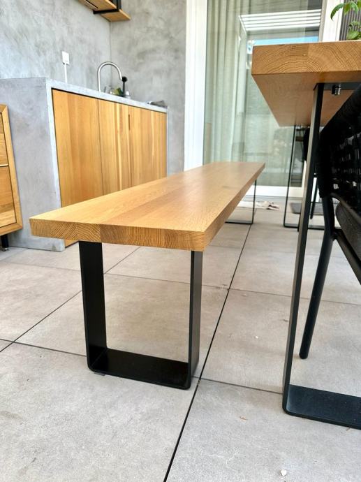 Stol i klupa izrađeni u kombinaciji masivne ploče hrasta i metalnih nogu ispunjavaju uvjete suvremenog i modernog dizajna kroz industrijski stil.