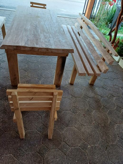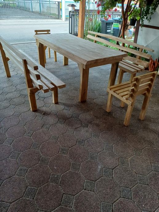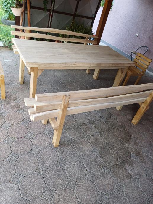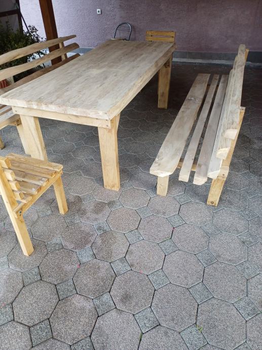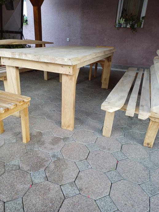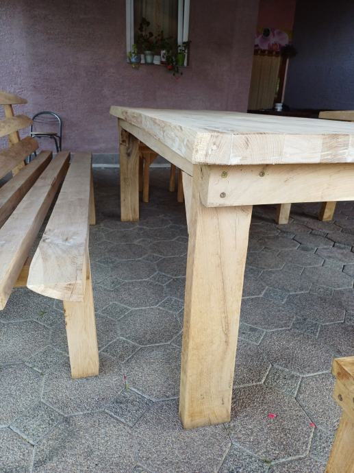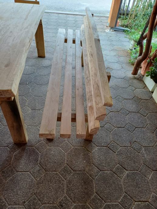 Povoljno prodajem stol i dvije klupe od hrasta dimenzija 200 x 90 cm i debljine 5 cm . Novo i ne korišteno. Pogodno za nadstrešnice, pečenjare itd.