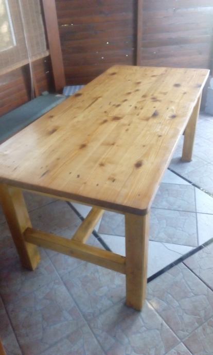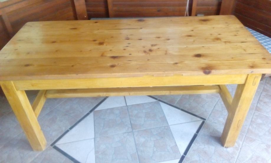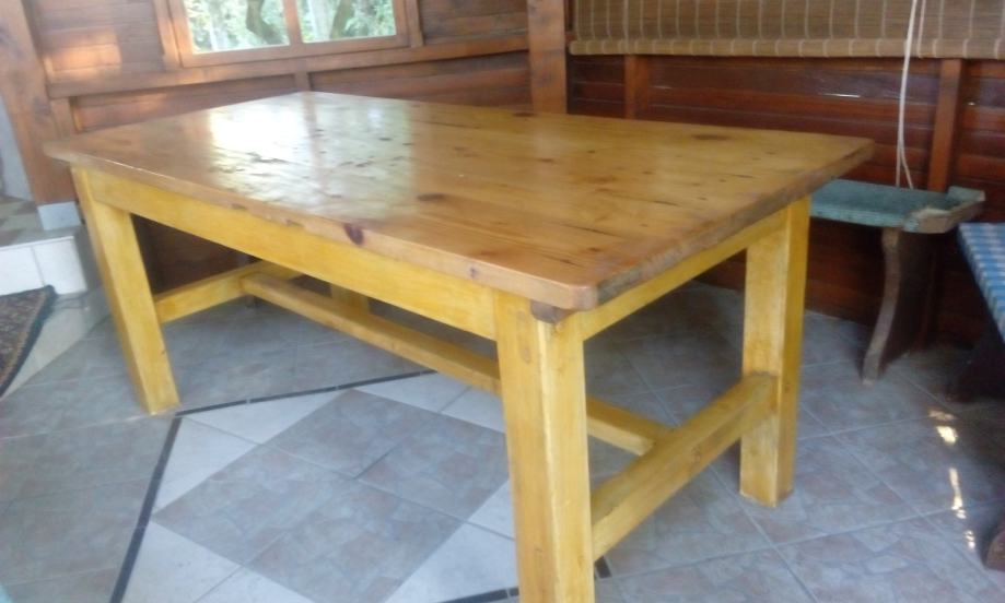Prodajem drveni masivni stol pogodan za kolinje ili može kao normalna stol na terasi. Ručno rađen. Dimenzije 180 x 80 cm. Gornja ploča je odvojiva. Stol je glatki ali nije lakiran. Bez oštećenja!
