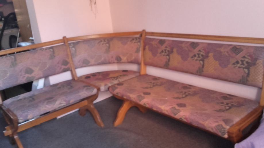 Prodaje se rabljena garnitura od punog drveta, orah. Stol na razvlačenje masivni ,kutna klupa i 3 stolice.Rabljeno ali u jako dobrom stanju.