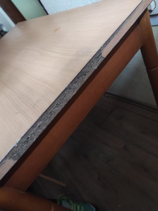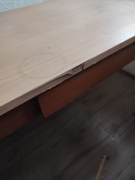 Gornja ploča je iveral i može još služiti ali trebalo bi je zamijeniti ako hoćete da bude super. Popucao je kant sa strane.