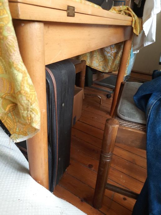 Nekorišten..stoji duže ali u kućnoj temperaturi. IMA dvije ploče koje se preklapaju, nije sistem otvaranja u sredini itd.Nego se rastavi i nasloni na drugi stol ili recimo..sudoperu.Hvala