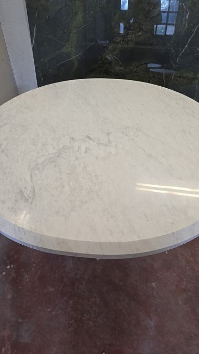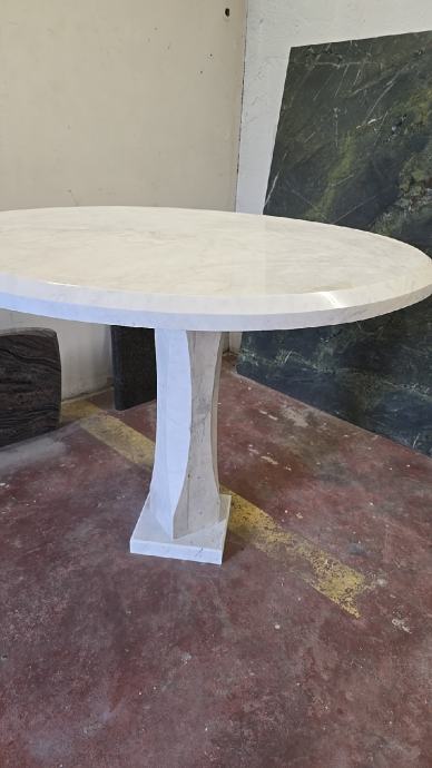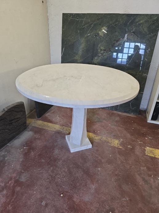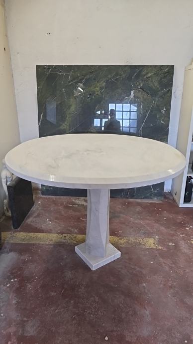 Mramorni stol, bijeli mramor Carrara,postolje iz jednog komada, promjer 115,debljina ploče 5 cm