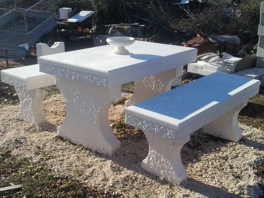 Prodaju se 2 masivna kamena stola ručne izrade unikat -dužina 140, širina 88 , visina 75. drugi je duž 150 širina 90 visina75 ,i dvije klupe 160 širina 50 debljina15 cm