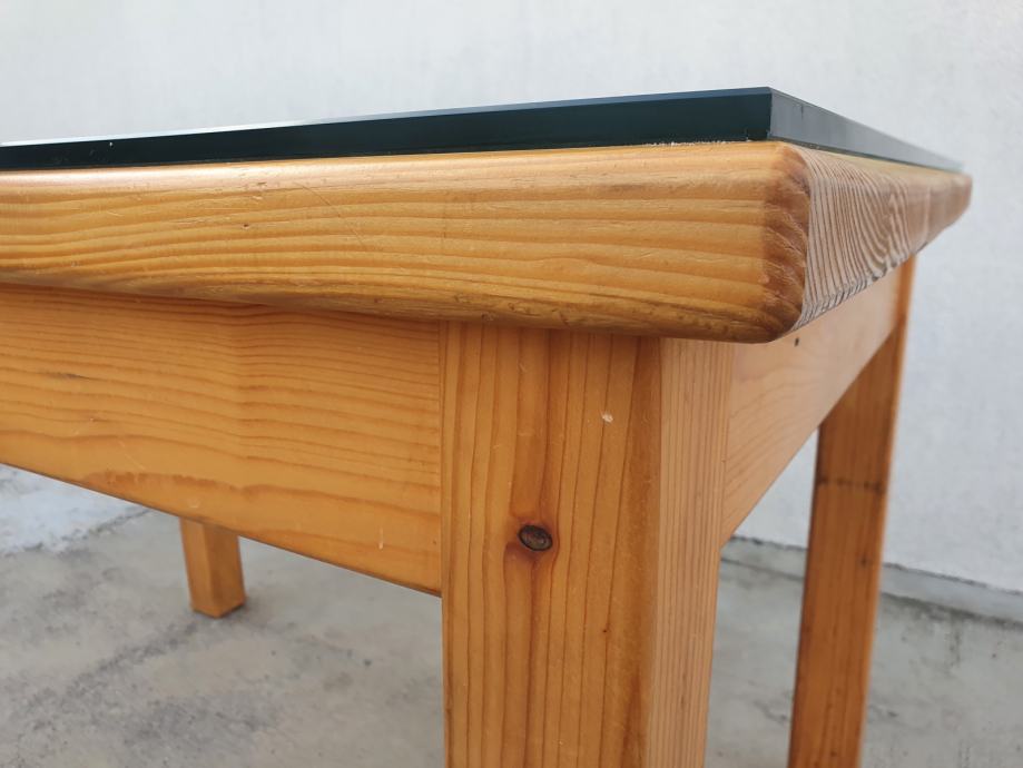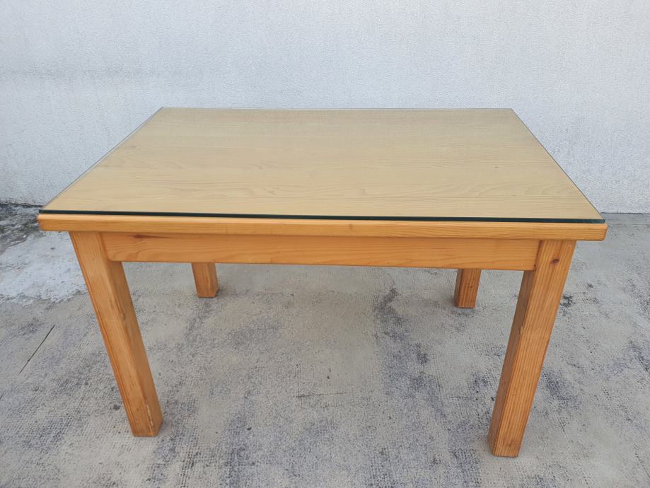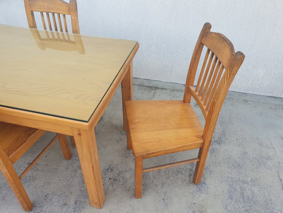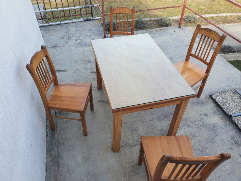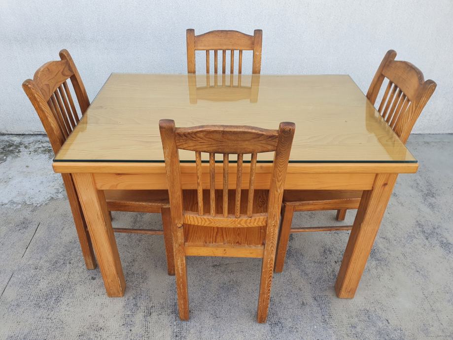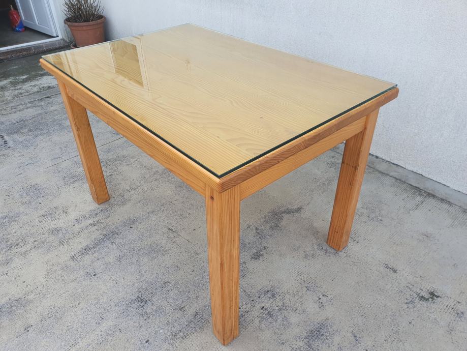 Prodajem masivni blagovaonski stol od jelovine sa 6 stolica i kaljenim staklom od 10mm.Čvrst i stabilan!Ručno radjen!