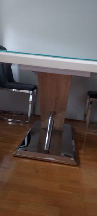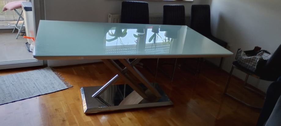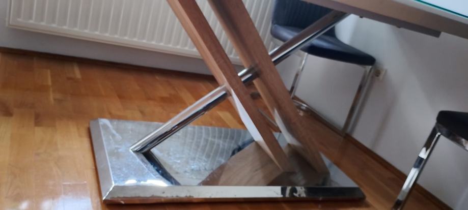 Dimenzije dužina 180, širina 100, visina 76, staklo, metal drvo. Stol je u dobrom stanju, čvrst, vidljivi tragovi korištenja