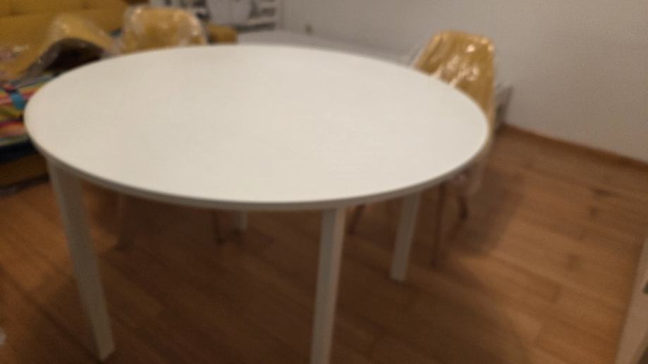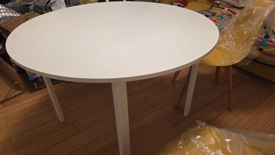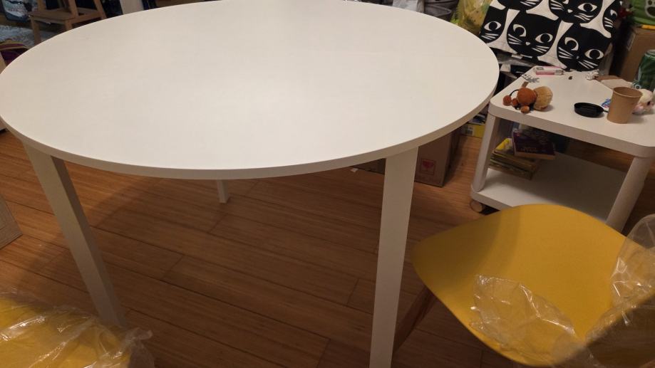 Okrugli novi stol(samo sastavljen) iz Ikee,promjera 107cm.