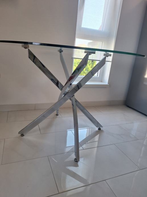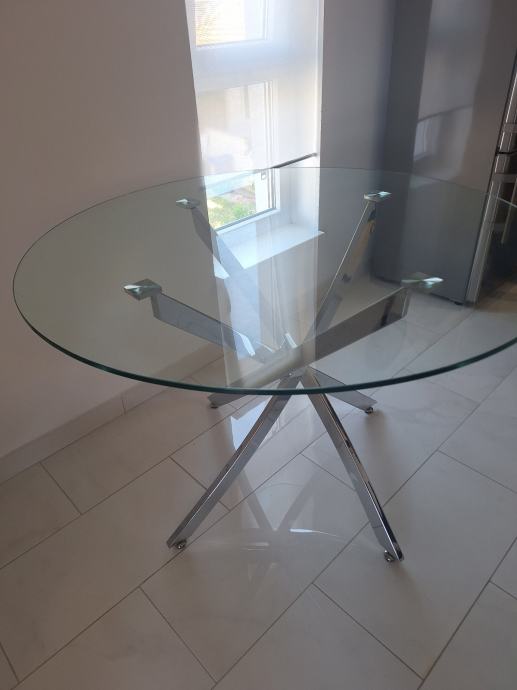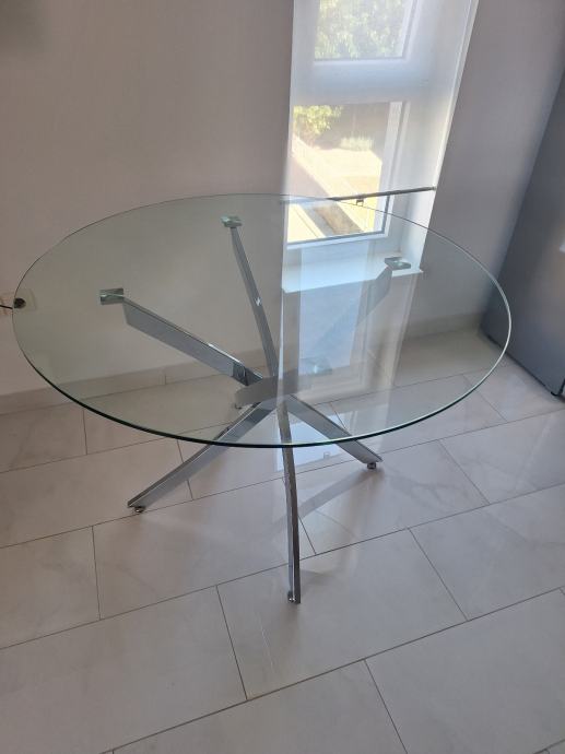Prodajem moderan stakleni stol,bez oštećenja,kaljeno staklo,kratko korišten. Fi stola 120cm visina 75cm.Mogućnost dostave Zagreb(nadoplata 30 eur) i 20 km u krugu Varaždina(10eur)
