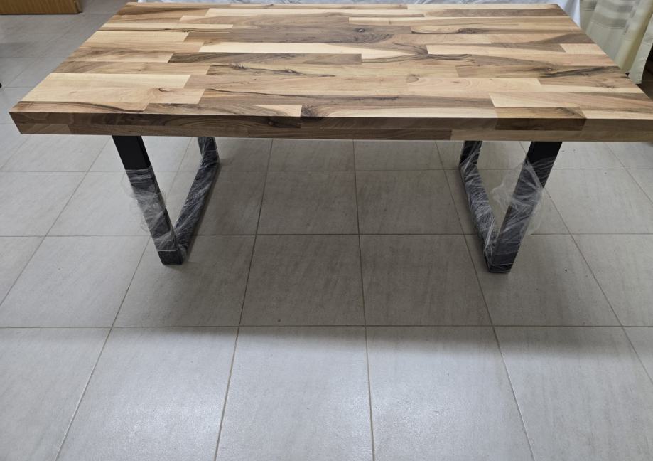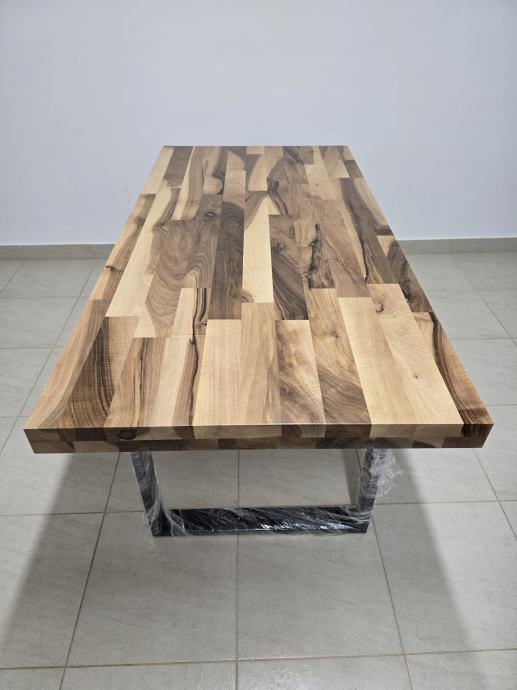 Potpuno novi, luksuzni i elegantan masivni stol od oraha, ručni rad, napravljen od odabranih komada oraha, 3x lakiran mat lakom. Dimenzije stola: 180 (d)x90 (š)x78 (v). Debljina ploče 40 mm + ukrasna bordura 40 mm.