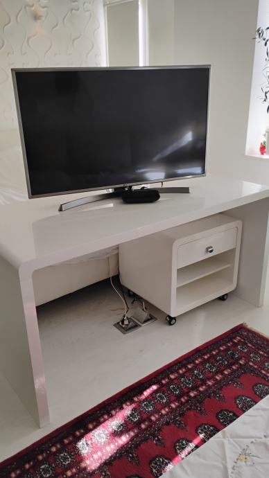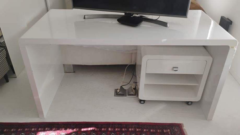 Dobro ušćuvan bijeli , sjajni stol i zasebni ormarić