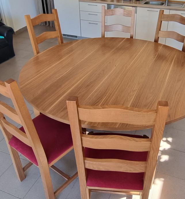 Prodajem stol promjera 160 cm i 8 sjedalica za 350 €. Preuzimanje na Dračevcu Zadarskom.